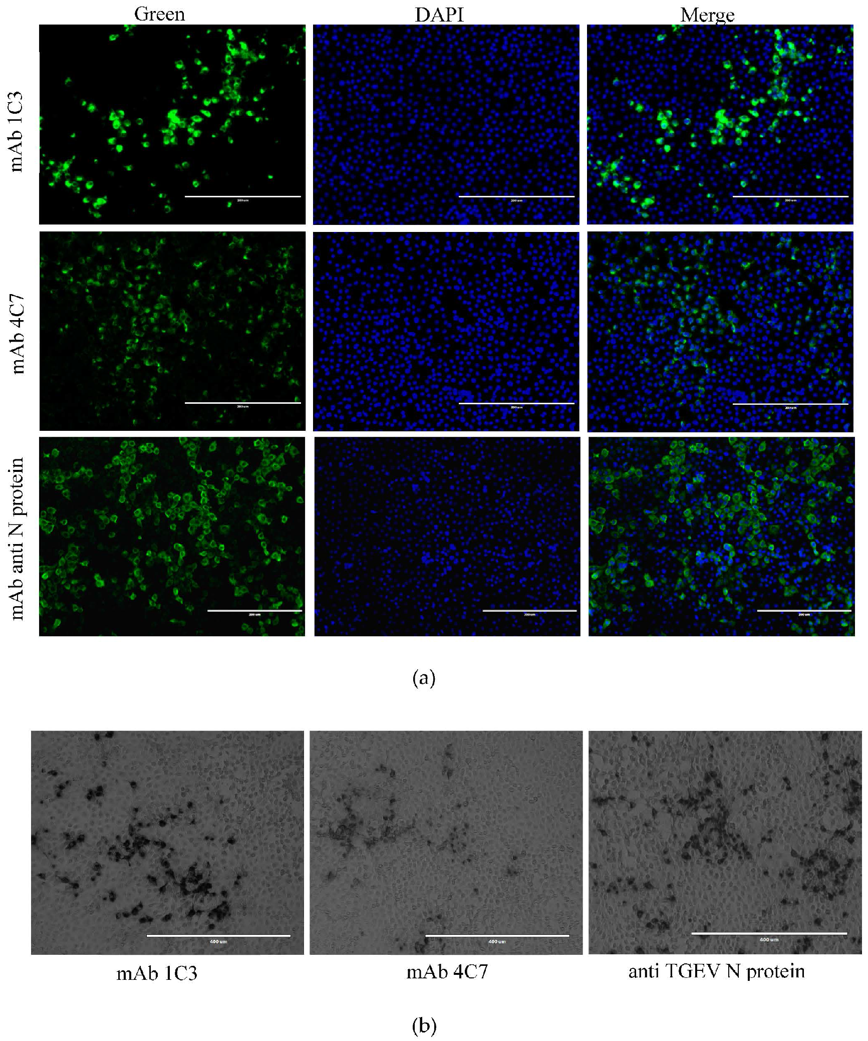 3.5. Reactivity of 1C3 and 4C7 with the TGEV M Protein in IFA and IPMA