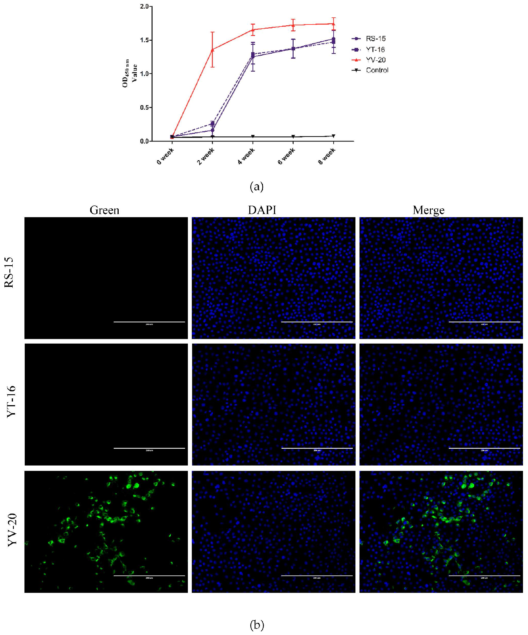 2.8. Animal Immunization with RS-15-KLH, YT-16-KLH, and YV-20-KLH