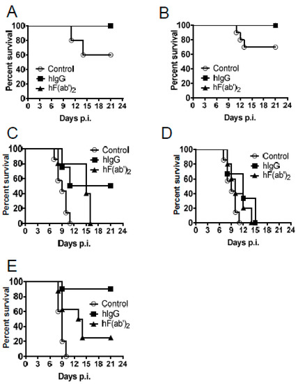 - Zhao, Z.; Yan, F.; Chen, Z.; Luo, D.; Duan, Y.; Yang, P.; Li, Z.; Peng, D.; Liu, X.; Wang, X. Cross clade prophylactic and therapeutic efficacy of polyvalent equine immunoglobulin F(ab′)2 against highly pathogenic avian influenza H5N1 in mice. Int. Immunopharmacol. 2011, 11, 2000–2006. [Google Scholar] [CrossRef] [PubMed]