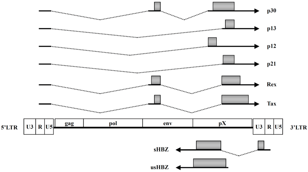 - Matsuoka, M.; Green, P.L. The HBZ gene, a key player in HTLV-1 pathogenesis. Retrovirology 2009, 6. [Google Scholar] [CrossRef] [PubMed]