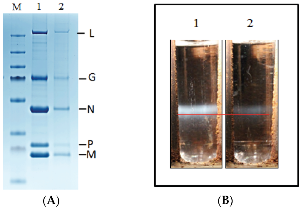 2.7. Purification of rVHSV and rVHSV-ΔN-Red + rVHSV-ΔP-Green Particles on Sucrose Gradient