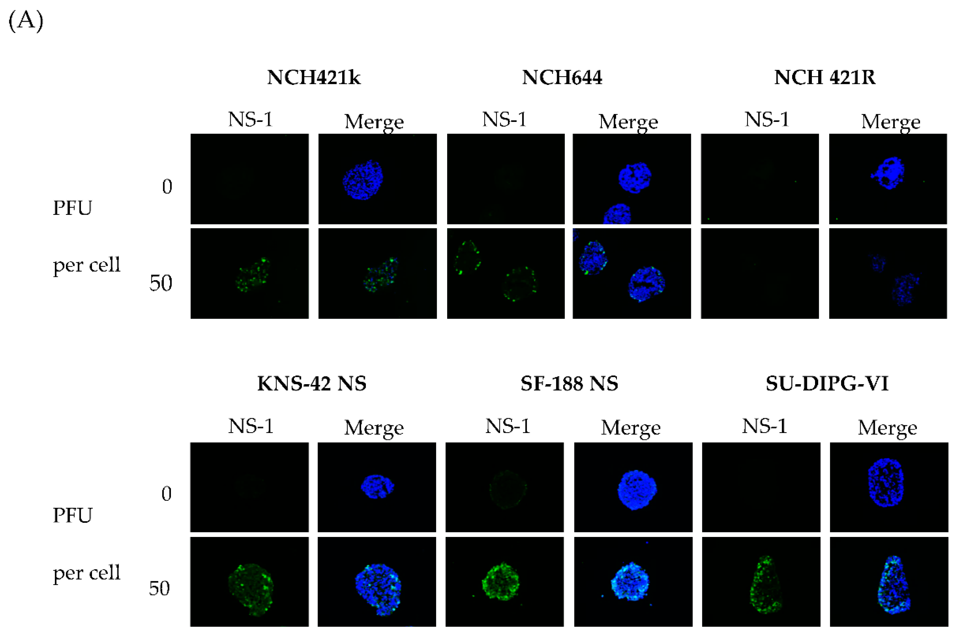 Yet NCH421R cells differed from NCH421k cells by the resistance of the former to H-1PV replication and cytopathic effects and the susceptibility of the latter to productive and lytic H-1PV infection (Figure 3, Figure 4 and Figure 6).