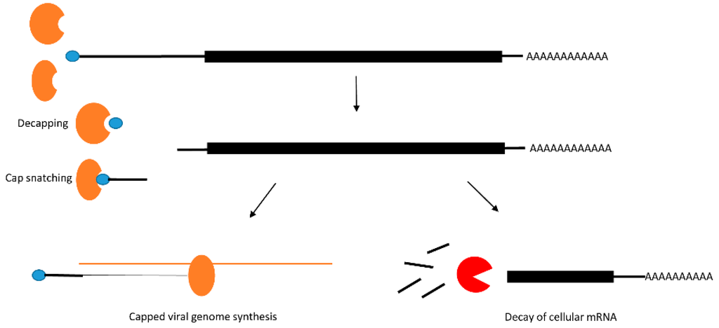 - Hopkins, K.; Cherry, S. Bunyaviral cap-snatching vs. decapping: Recycling cell cycle mRNAs. Cell Cycle 2013, 12, 3711–3712. [Google Scholar] [CrossRef] [PubMed]