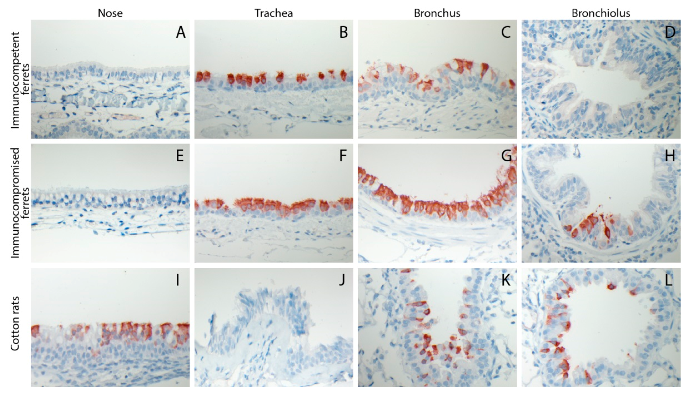 3.3. HRSV Replicates in Respiratory Epithelial Cells of the Ferret