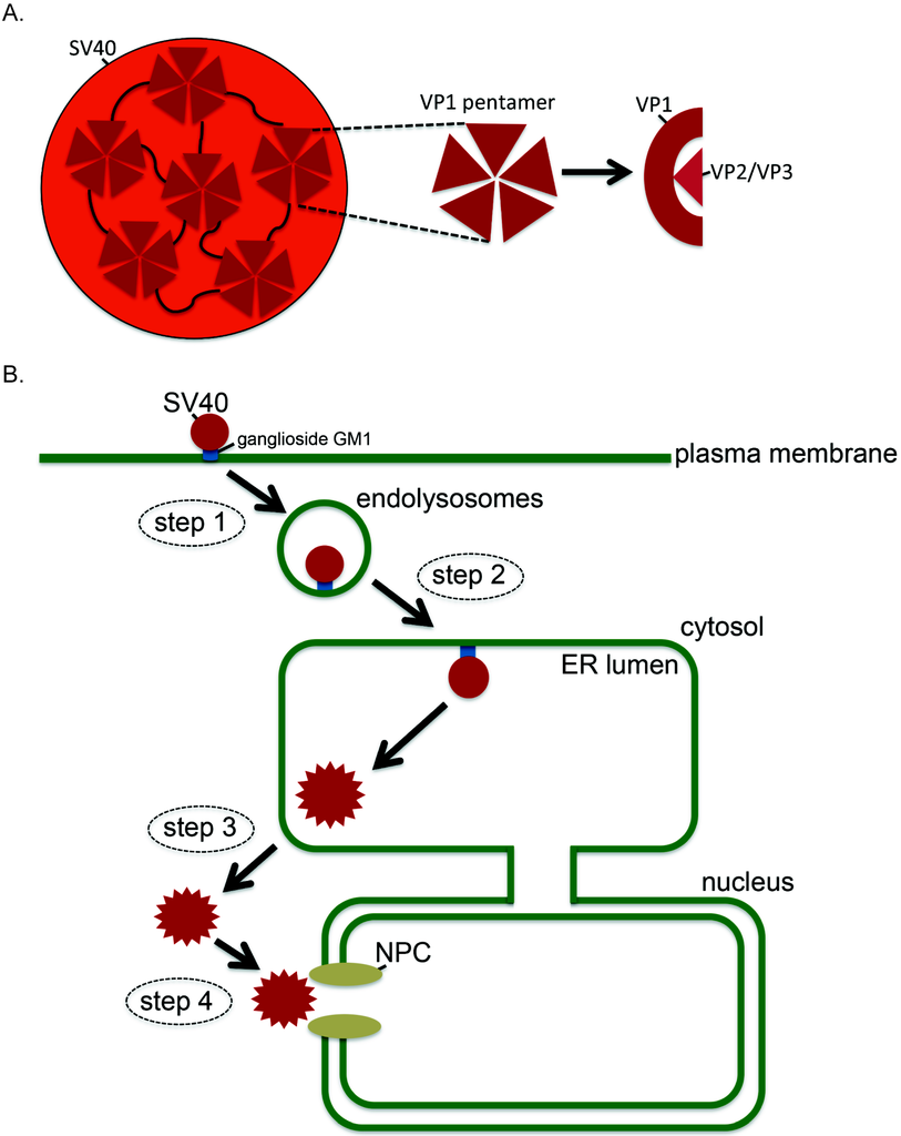 - Kuksin, D.; Norkin, L.C. Disassembly of simian virus 40 during passage through the endoplasmic reticulum and in the cytoplasm. J. Virol. 2012, 86, 1555–1562. [Google Scholar] [CrossRef] [PubMed]