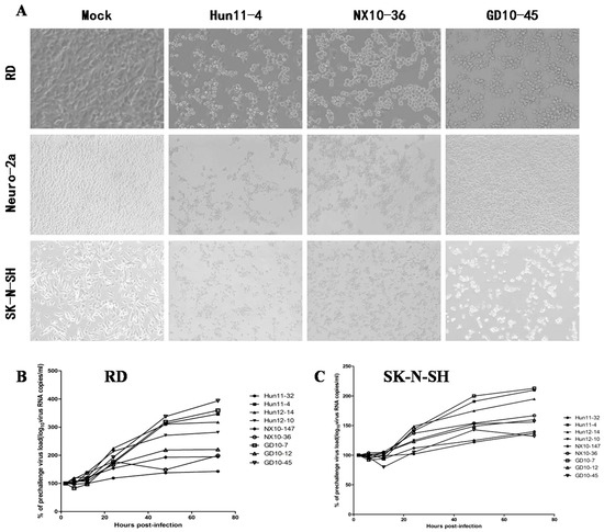3.1. Virulence and Neurotropism of EV71 In Vitro