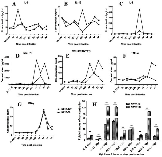 3.6. Detection of Cytokines and Chemokines in the Sera of Severe and Mild EV71 Mouse Models