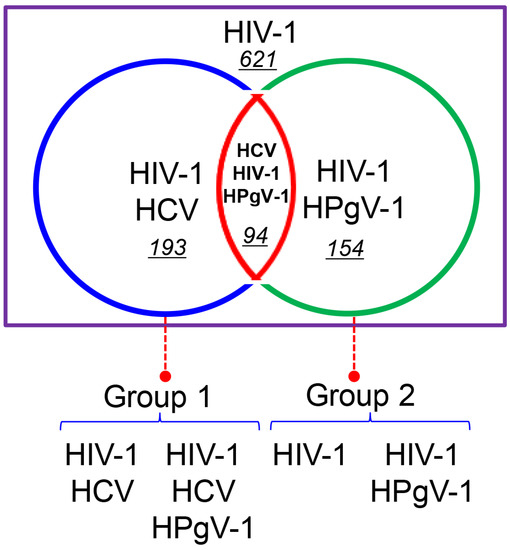 - Alcalde, R.; Nishiya, A.; Casseb, J.; Inocencio, L.; Fonseca, L.A.; Duarte, A.J. Prevalence and distribution of the GBV-C/HGV among HIV-1-infected patients under anti-retroviral therapy. Virus Res. 2010, 151, 148–152. [Google Scholar] [CrossRef] [PubMed]