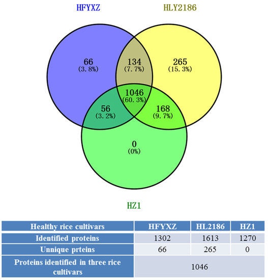2.3. Quantitative Label-Free Shotgun Proteomic Analysis of Three Rice Varieties