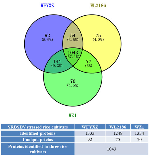 3.4. Proteomic Analysis in Three Healthy and SRBSDV-Stressed Rice Cultivars