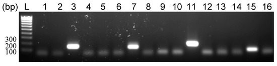 PCR amplification of EhV PCNA (lanes 1–4), MCP (lanes 5–8), helicase (9–12), and DNA polymerase (lanes 13–16) from DNA extracted from RCC1217 (1N) (lanes 1, 5, 9, 13), RCC1216 (lanes 2, 6, 10, 14), and CCMP1516 + EhV-86 (lanes 3, 7, 11, 15). Lanes 4, 8, 12, 16 are negative DNA (no template) controls.