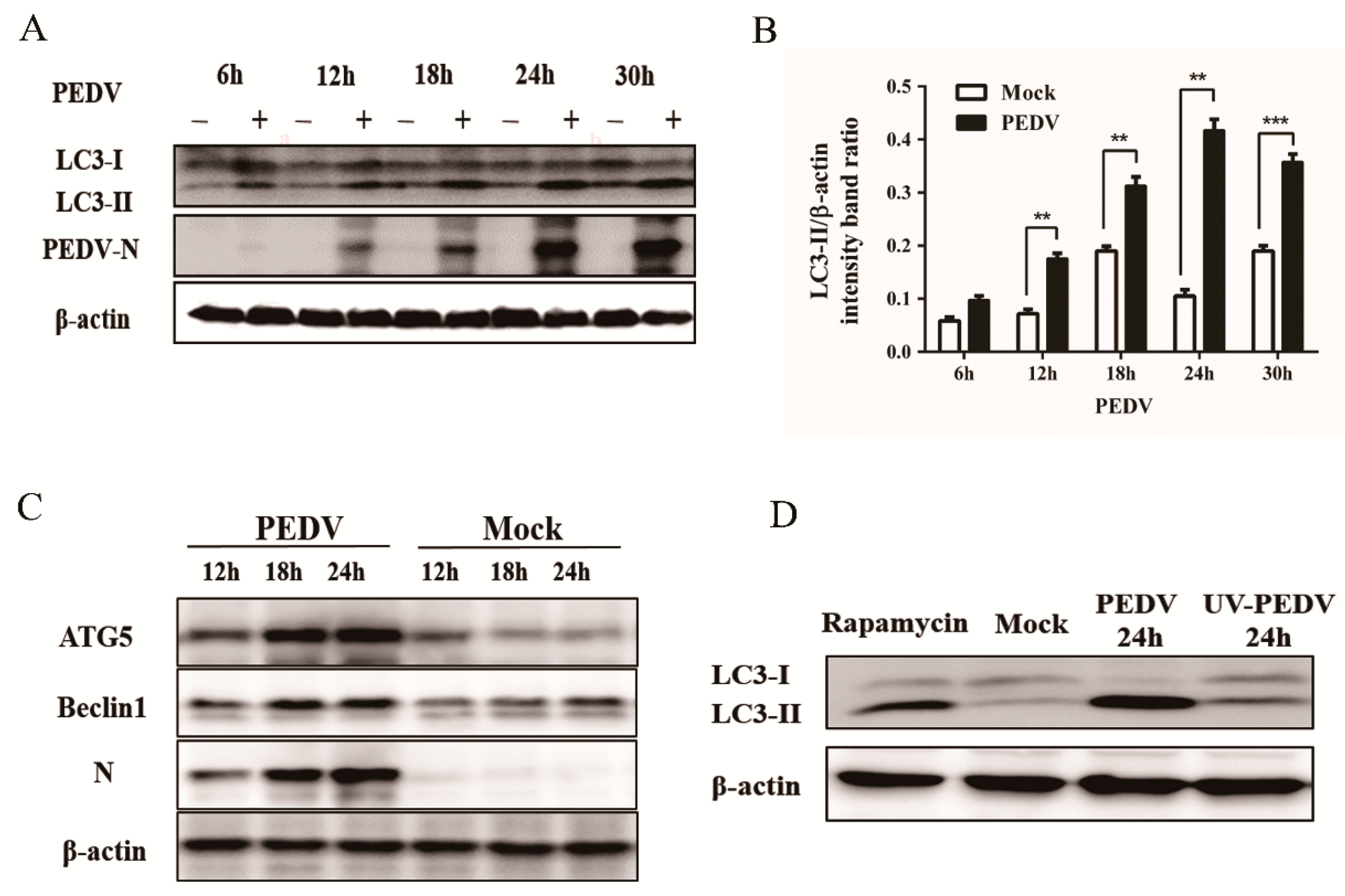 3.1. PEDV Infection Increases the Levels of Autophagy in Vero Cells