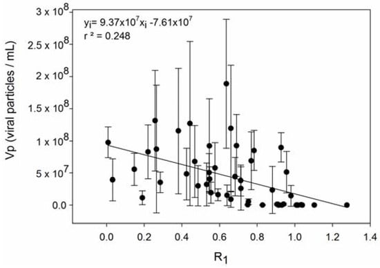 Viral production (Vp) plotted against resistance capacity R1. Error bars show standard deviation (n = 13).