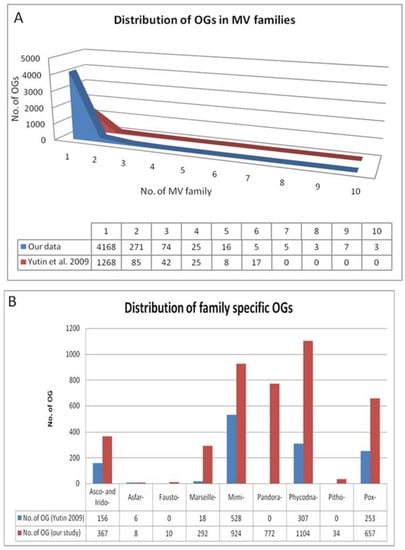 - Yutin, N.; Colson, P.; Raoult, D.; Koonin, E.V. Mimiviridae: Clusters of orthologous genes, reconstruction of gene repertoire evolution and proposed expansion of the giant virus family. Virol. J. 2013, 10, 106. [Google Scholar] [CrossRef] [PubMed]