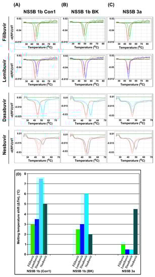 3.1. Stabilization of the Thermal Unfolding of NS5B by Allosteric Inhibitors