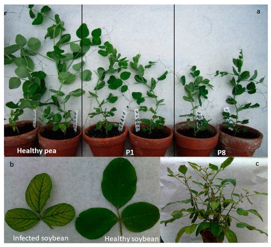 - Tamada, T.; Goto, T.; Chiba, I.; Suwa, T. Soybean-dwarf a new virus disease. Ann. Phytopathol. Soc. Jpn. 1969, 25, 282–285. [Google Scholar] [CrossRef]