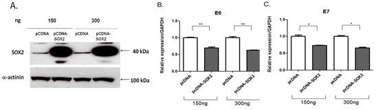 3.6. E6 and E7 Endogenous Expression Is Down Regulated by SOX2