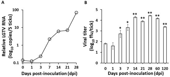 2.5. Langat Virus Titration Among LGTV-Infected Adult Ticks