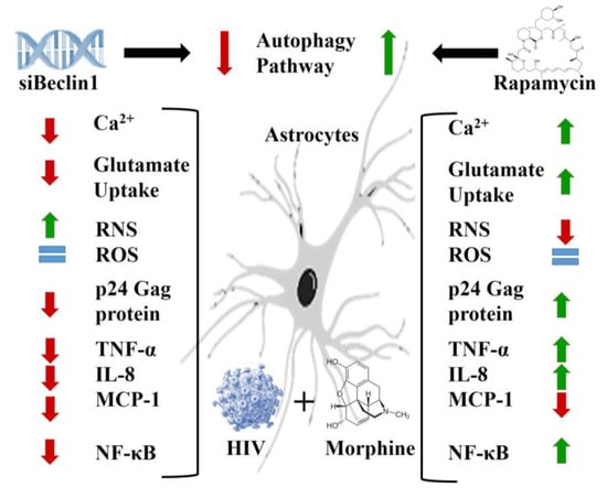Rodriguez M, Lapierre J, Ojha CR, Estrada-Bueno H, Dever SM, Gewirtz DA, Kashanchi F, El-Hage N. Importance of Autophagy in Mediating Human Immunodeficiency Virus (HIV) and Morphine-Induced Metabolic Dysfunction and Inflammation in Human Astrocytes. Viruses. 2017; 9(8):201. https://doi.org/10.3390/v9080201