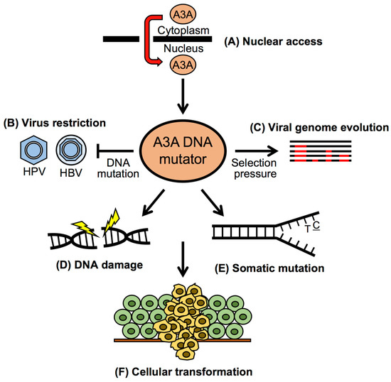 - Mussil, B.; Suspène, R.; Aynaud, M.-M.; Gauvrit, A.; Vartanian, J.-P.; Wain-Hobson, S. Human APOBEC3A Isoforms Translocate to the Nucleus and Induce DNA Double Strand Breaks Leading to Cell Stress and Death. PLoS ONE 2013, 8, e73641. [Google Scholar] [CrossRef] [PubMed]