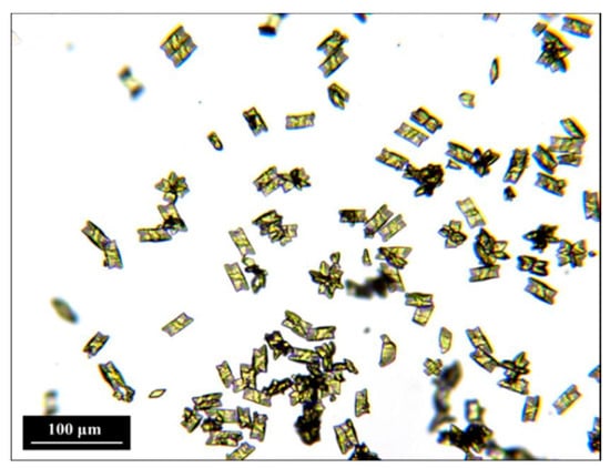 Seeds obtained by membrane crystallization are shown in Figure 3. Crystals displayed the characteristic yellow color of piroxicam monohydrate (polymorphic purity was checked with Raman microscopy and differential scanning calorimetry) and the shape of a prism with a rhombus base.