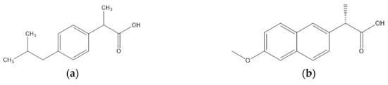 Chemical structure of (a) Ibuprofen; (b) Naproxen; (c) Carbamazepine; and (d) Itraconazole.