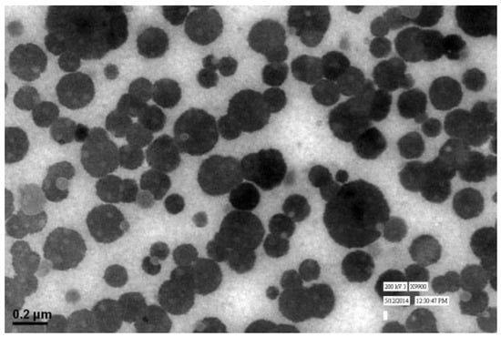 The particle size and LBL assembly by respective polymers evaluated in NAR-HA@CH-PCL-NP through zetasizer and respective zeta potential values were further investigated for the surface morphology by Transmission Electron Microscopy (TEM). TEM micrograph of NAR-HA@CH-PCL-NP presented spherical nanoparticles as depicted in Figure 4. The cumulative percent intensity as revealed in Figure 2b indicated a narrow range of particle size distribution.