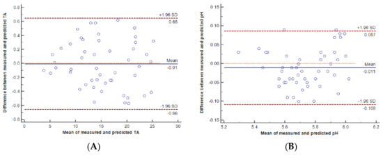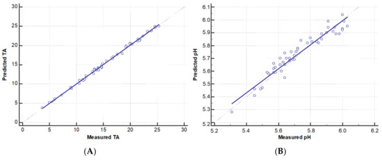 4.2. Comparison of Measured and Predicted Titratable Acidity and pH