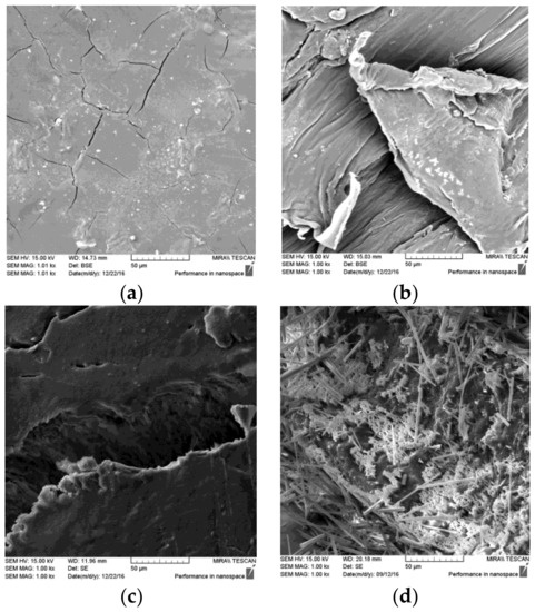 Scanning electron microscopy (SEM) was performed on a Mira SEM (Tescan, Oxford Instruments, Cambridge, UK) using a range of magnifications to evaluate the surface morphology of samples through the secondary electrons function. Samples were placed in a petri dish and liquid nitrogen was poured into the dish with enough to completely submerge the samples in the liquid. The lid was placed on the petri dish and left until the nitrogen totally evaporated, which was immediately followed by the transversal break of samples. Afterward, the surface of the specimens and the cross-section were examined. First, the samples were placed on an aluminum stub and were gold coated using Baltec SCD 005 sputter coater (BAL-TEC GmbH D–58579, Schalksmühle, Germany) for 110 s at 0.1 mBar vacuum before observation.