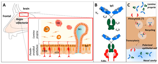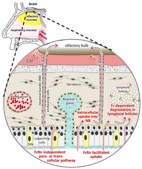 Ladel S, Flamm J, Zadeh AS, Filzwieser D, Walter J-C, Schlossbauer P, Kinscherf R, Lischka K, Luksch H, Schindowski K. Allogenic Fc Domain-Facilitated Uptake of IgG in Nasal Lamina Propria: Friend or Foe for Intranasal CNS Delivery? Pharmaceutics. 2018; 10(3):107. https://doi.org/10.3390/pharmaceutics10030107