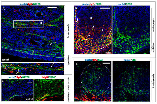 - Brandtzaeg, P.; Baekkevold, E.S.; Farstad, I.N.; Jahnsen, F.L.; Johansen, F.-E.; Nilsen, E.M.; Yamanaka, T. Regional specialization in the mucosal immune system: What happens in the microcompartments? Immuniol. Today 1999, 20, 141–151. [Google Scholar] [CrossRef]