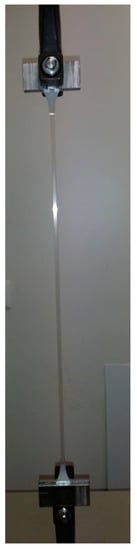 We investigated the mechanical properties using a tensile machine, AGS 500 ND (Shimadzu Corporation, Kyoto, Japan) equipped with a 500 Newton (N) load cell, with a crosshead stroke of 1100 mm, and tensile stroke of 740 mm. The test was performed using a strain rate of 10 mm/min. The test protocol for the mechanical measurements was reported in a previous work [24]. Estimating the following is possible: elastic portion by a linear regression procedure (Et); stress properties: yield stress (σy), tensile strength (σM), and tensile stress at break (σB); and tensile strain expressed as the increase in length: at yield (εy), at tensile strength (εM), and at break (εtB). From each set of results, we estimated the tendency of materials to oppose deformation, and evaluated the curve profile in elasticity regime, the elongation percentage in the elasticity regime, and the absolute elongation elasticity.