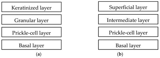 Structures of (a) keratinized and (b) non-keratinized oral mucosa [10].