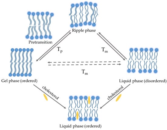 - Koynova, R.; Caffrey, M. Phases and phase transitions of the phosphatidylcholines. Biochim. Biophys. Acta 1998, 1376, 91–145. [Google Scholar] [CrossRef]