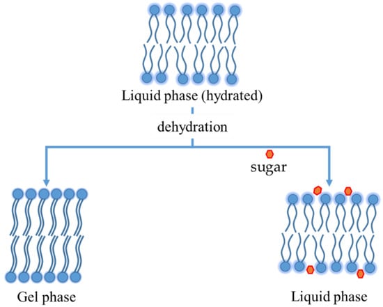 - Koster, K.L.; Webb, M.S.; Bryant, G.; Lynch, D.V. Interactions between soluble sugars and POPC (1-palmitoyl-2-oleoylphosphatidylcholine) during dehydration: Vitrification of sugars alters the phase behavior of the phospholipid. Biochim. Biophys. Acta 1994, 1193, 143–150. [Google Scholar] [CrossRef]