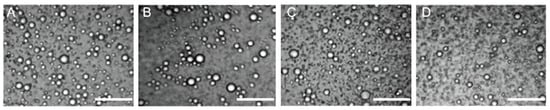 To justify the adsorption behavior of nanocrystals at the oil-water interface, Pu-NSSPE was observed by FM directly because puerarin had a strong fluorescence when excited by UV-lights [36]. A drop of emulsion was placed on a glass surface and visualized with a fluorescence inverted microscope (DFC310 FX, Leica, Solms, Germany) immediately.