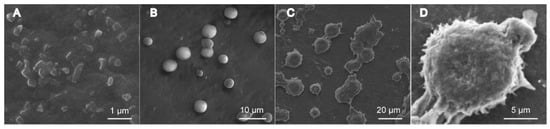 SEM images of (A) puerarin nanocrystals, (B) blank oil droplet, (C) Pu-NSSPE, and (D) emulsion droplet surface of Pu-NSSPE.