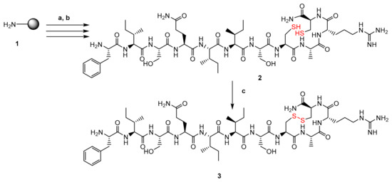 - Haag, A.F.; Kerscher, B.; Dall’Angelo, S.; Sani, M.; Longhi, R.; Baloban, M.; Wilson, H.M.; Mergaert, P.; Zanda, M.; Ferguson, G.P. Role of Cysteine Residues and Disulfide Bonds in the Activity of a Legume Root Nodule-Specific, Cysteine-Rich Peptide. J. Biol. Chem. 2012, 287, 10791–10798. [Google Scholar] [CrossRef] [PubMed]