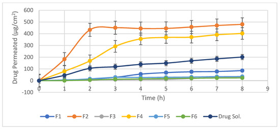 Ex-vivo corneal permeation profile of different formulae.