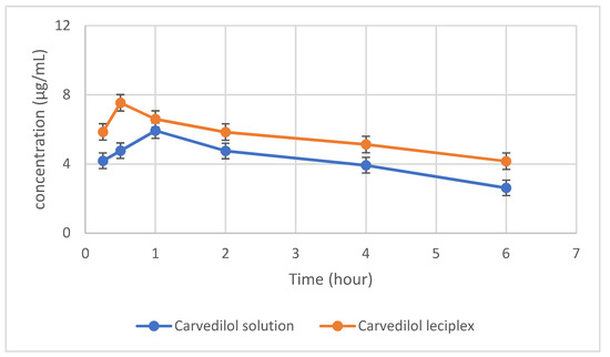 2.5. In-Vivo Evaluation of Carvedilol Leciplex