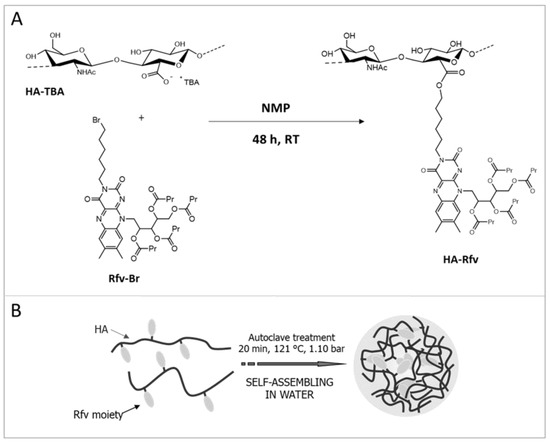 20]. The autoclave process allows the spontaneous formation of NHs by self-assembling of the HA-Rfv suspension due to the high pressure and temperature conditions that promote intra- and inter-molecular interactions among the hydrophobic groups of the HA-Rfv chains [