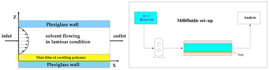 If film swelling occurs in the millifluidic device, Equation (6) represents an impermeability condition since the thin film adheres firmly on the bottom wall of the device and no solvent permeation is allowed at the bottom surface of the film. Therefore, the moving boundary model describing film swelling and erosion in the MFTD must be solved with initial conditions