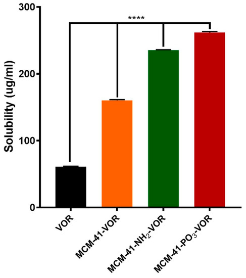 2.6. Vorinostat Solubility from MCM-41 and Functionalised Particles