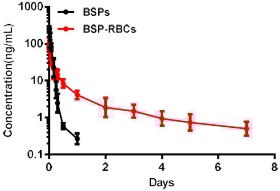 Pharmacokinetics of NRBCs and BSP-RBCs. Data are represented as mean ± SD, six samples were used in each group.