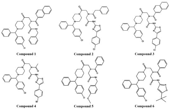 Piperazine is an important six-membered, N-heterocyclic compound found in the structure of a number of pharmaceuticals used against many different diseases, such as multiple cancers, primary hypertension, HIV/AIDS, and inflammation [15,16]. However, only a limited number of studies have assessed P-gp modulation with piperazine or its derivatives. A five-hydroxychromone linked piperazine unit was identified as a highly active P-gp-mediated MDR modulator [17]. Some novel compounds with 10-beta-phenyl ethers of dihydroartemisinin (DHA) with piperazine substitutions have demonstrated significant effects on transporter-mediated antiproliferation in human breast cancer cells. Among them, two DHA compounds with piperazine substitution had a 1.5–2-fold greater effect on antiproliferative activity than the DHA compounds without piperazine substitution [18]. These reports have suggested the possibility of piperazine or its analogues as potential P-gp modulators.
