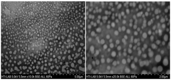 Field emission scanning electron microscope (FESEM) images of (A) placebo chitosan nanoparticles and (B) rotigotine-loaded chitosan nanoparticles loaded CS NPs.