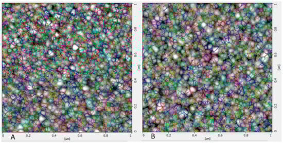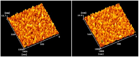 Atomic force microscopy images of (A) placebo NPs and (B) rotigotine-loaded NPs. Surface morphological analysis of the particles using AFM also confirmed the size range approximately 14.36 nm for placebo and 16.04 nm for rotigotine-loaded NPs nm. Topography image 1 micrometer × 1 micrometer of the same region.