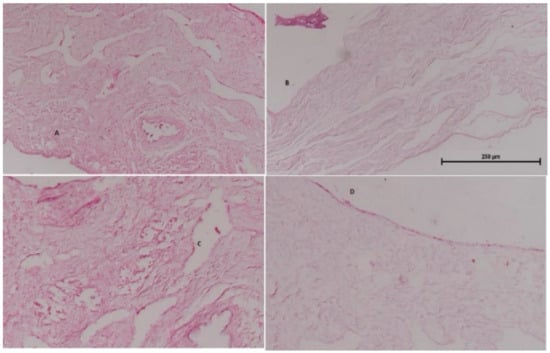 Nasal histopathology is useful to determine the effects of the formulation on the integrity of nasal mucosa. Figure 13 shows (A) normal mucosa (negative control), (B) mucosa treated with isopropyl alcohol (positive control treated), (C) mucosa treated with rotigotine solution, and (D) mucosa treated with rotigotine nanoparticles. Normal mucosa showed intact, well-preserved epithelial lining and numerous mucous glands. The mucosa treated with isopropyl alcohol showed extensive damage with alteration in the epithelial lining, absence of mucous glands and necrosed tissue. Mucosa treated either with rotigotine solution or rotigotine nanoparticles showed preservation of the overall structure, without evidence of tissue necrosis or ulceration [18,19]. The viability of mucosa specimens was ascertained and the histopathological study showed that mucosal barrier function was unaffected by the nanoparticular formulations.