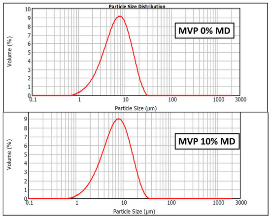 Size distribution of the 0% MD MVP and 10% MD MVP.