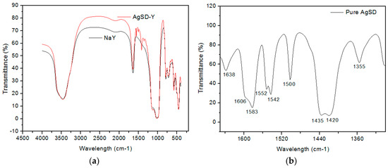 Spectrum of (a) NaY, AgSD-Y zeolite and (b) pure AgSD.